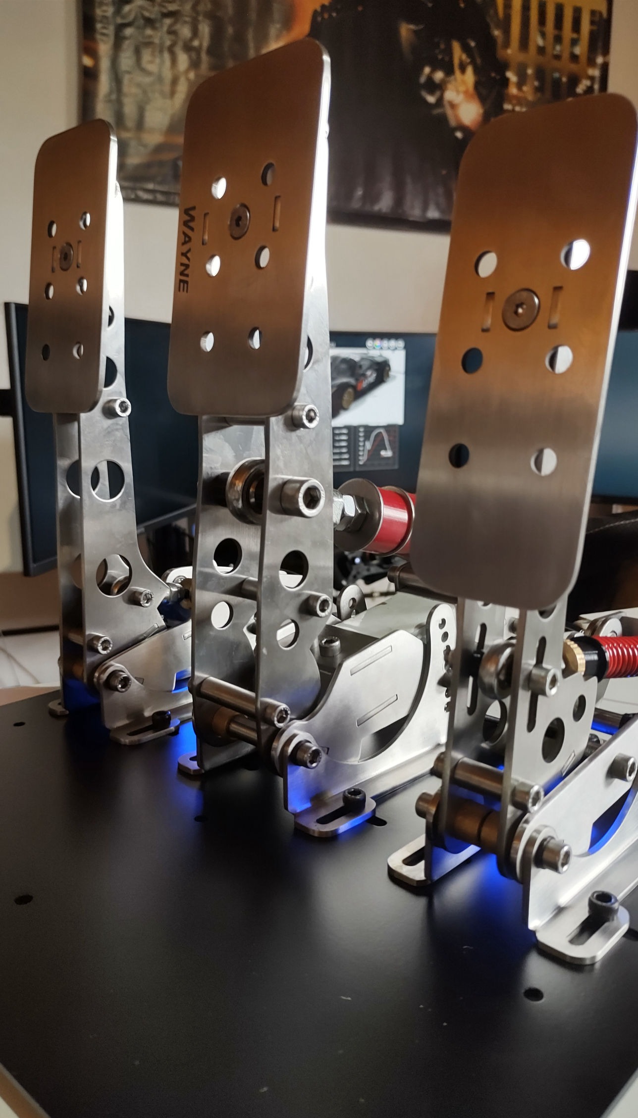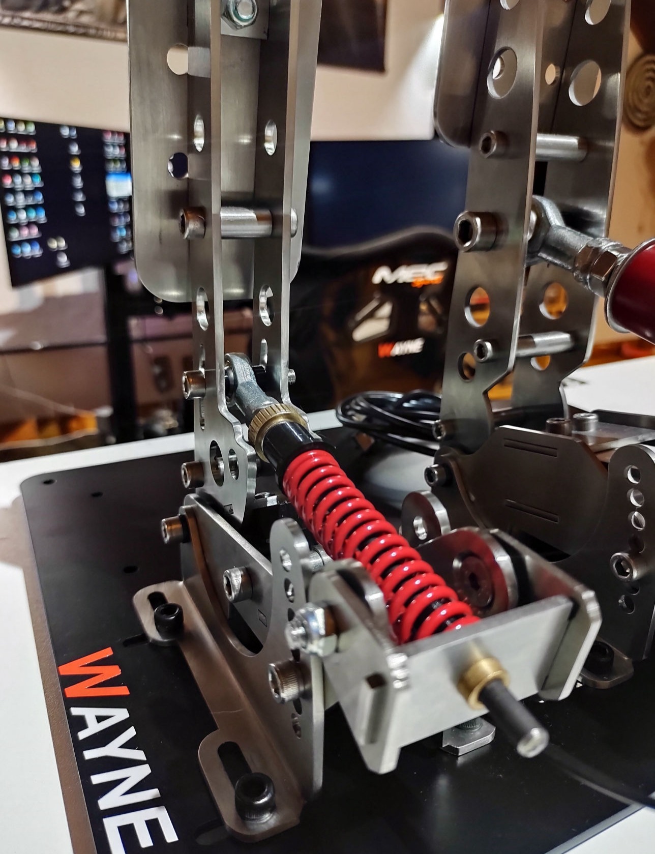 Los Pedales Wayne Pro fueron creados para simuladores de autos de alta gama. Poseen un diseño muy resistente y duradero fabricado con piezas y bulonería de acero inoxidable y bujes de bronce autolubricados.